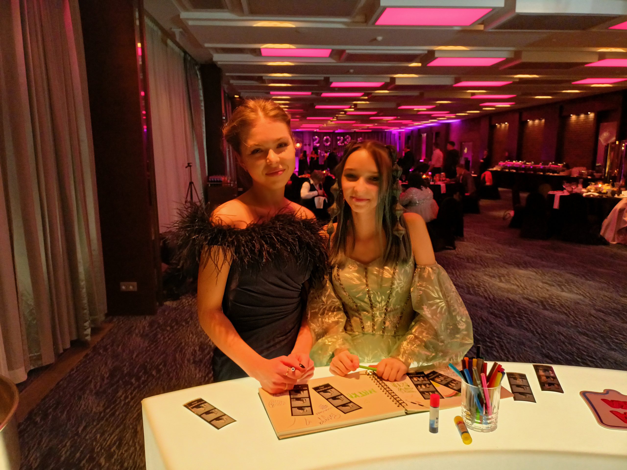 Księga gości, markery, ozdoby itp. do sklejania wydrukowanych zdjęć i wpisywania życzeń.